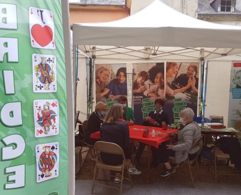 Le Bridge Club de Lisieux, tout au long de cette journée a présenté ses diverses activités. Les démonstrations de bridge ont répondu à la curiosité des visiteurs. La méthode de la FFB “Apprendre à jouer en 10 minutes” a obtenu un vif succès.